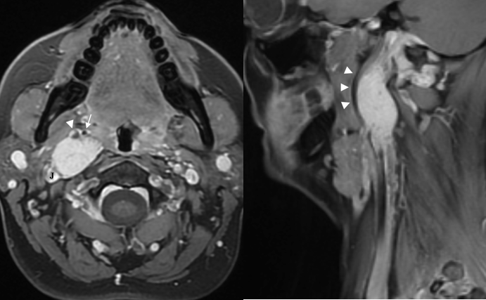 Vagal nerve tumor April 30, 2016 691 × 427 Neurology Case 2 Vagal nerve tumor – Displaces both internal and external carotid vessels anteriorly
